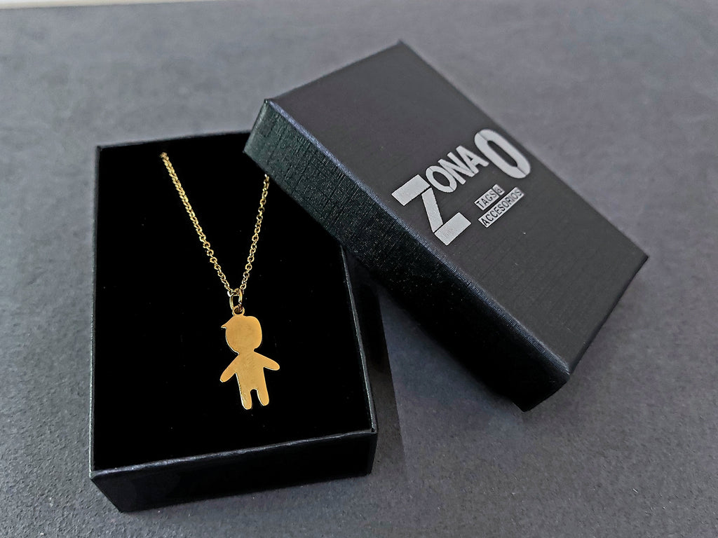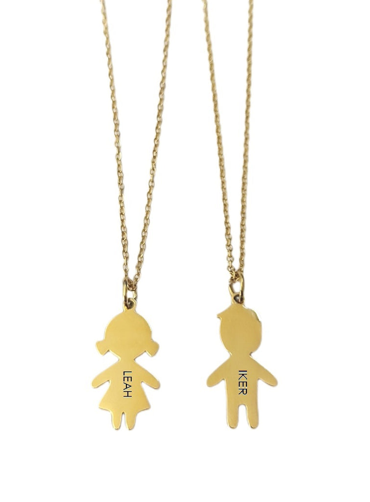 Dije de Niño o Niña en Acabado pulido tono dorado personalizado con nombre grabado laser de fibra optica , La mejor calidad y nitidez de grabado (no se borra),